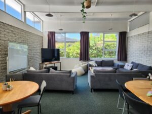 Right in the centre of the hostel is large lounge where students can study, watch TV, play games or do group activities. Another rec room is located at the back of the Hostel where students can hang out, play pool, table tennis or darts. A separate chill space is located by the dining hall.